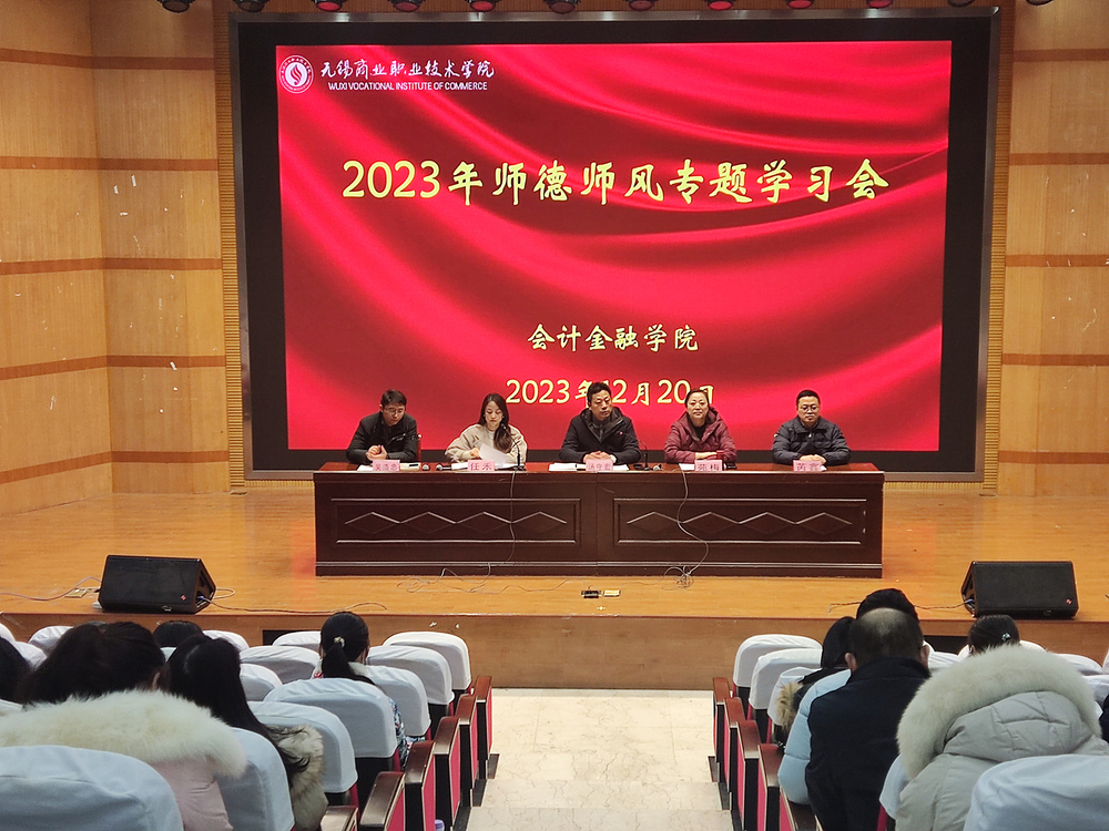 12月20日,会计金融学院在明德楼四楼报告厅召开师德师风专题学习会。会计金融学院班子成员以及全体教职工参加会议,会议由党总支副书记任禾主持。